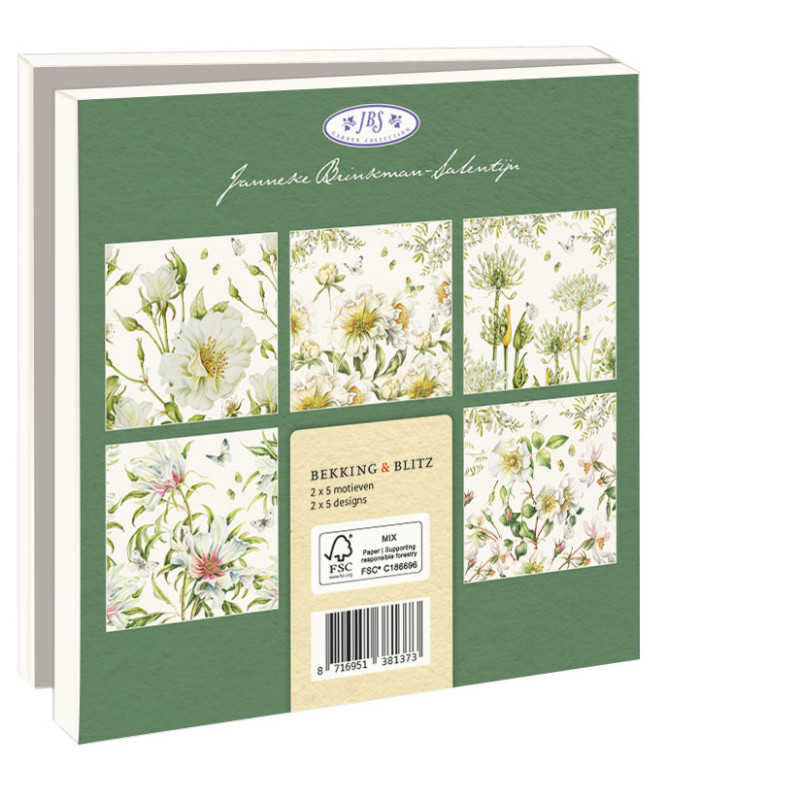 Een handgeschreven kaartje met een toepasselijke illustratie doet zoveel meer dan een snelle e-mail. Daarom zijn de kaartenmapjes van Bekking & Blitz zo populair. Heel veel keus voor elke gelegenheid! Tien dubbele kaarten (2 x 5 verschillende motieven) of 10 verschillende kaarten met 10 luxe enveloppen, netjes opgeborgen in een aantrekkelijk kaartenmapje. Op de achterkant van het mapje staan de verschillende motieven afgebeeld. Zo vindt u snel de kaart die u nodig heeft. De binnenkant van de dubbele kaarten zijn blanco. Alle ruimte dus voor uw persoonlijke boodschap. – 14,5 x 14,5 x 1,5 cm – Set van 10 dubbele kaarten met enveloppen – 2 x 5 motieven – 240 grms off white papier – Totale gewicht 152 gram