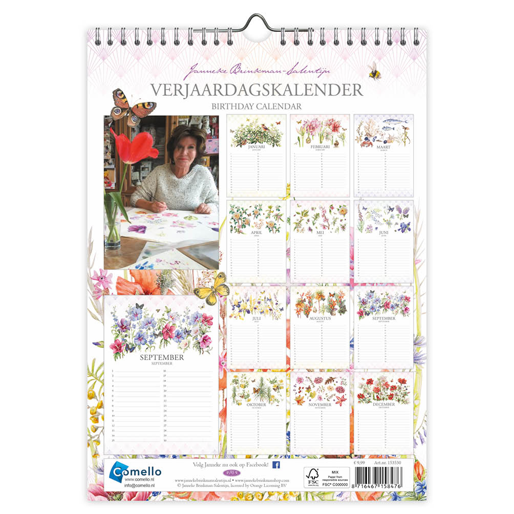 Janneke Brinkman Klaproos met vlinder 18x25 verjaardagkalender aantal