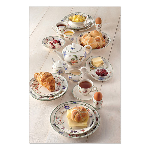 The breakfast plates have a diameter of 21 cm and are part of the series “Fruit & Flowers”. The breakfast plates are made of porcelain and are microwave and dishwasher-safe